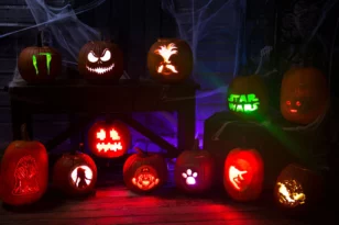 Dans la tradition, il faut vider les citrouilles, leur donner une forme de visage et les utiliser comme lampion.