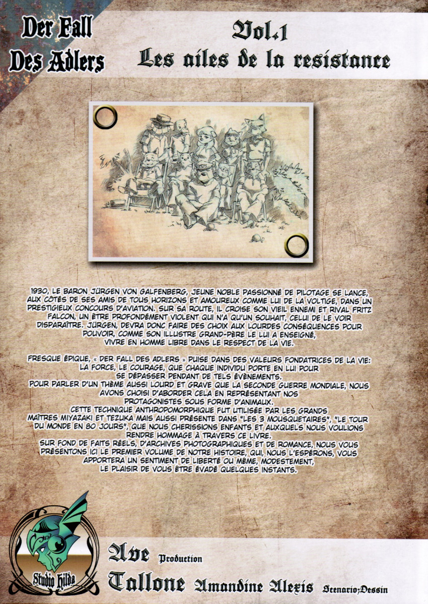 Alexis Tallone s’est beaucoup inspiré du graphisme de la série Sherlock de Hayao Miyazaki pour donner vie à ses personnages dans Der Fall Des Adlers qui raconte les histoire d’as du pilotage durant la seconde guerre mondiale.