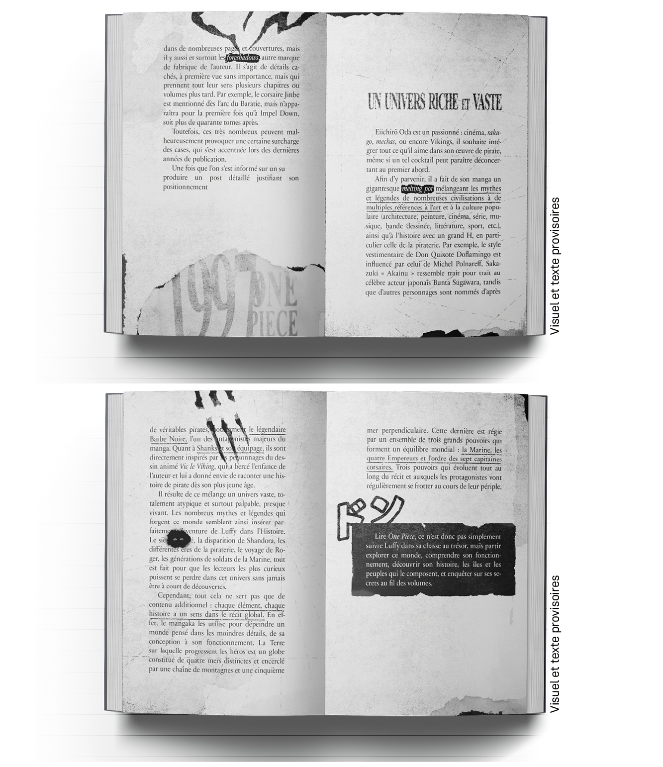 Aujourd’hui, One Piece : l’art de raconter une histoire est l’aboutissement de ce travail, une synthèse de mon amour pour One Piece et de ma passion pour l’écriture et l’édition.Antoine Bonnici :